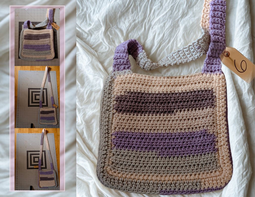 Purple Brown Tan Multi Color Crocheted Bag #6